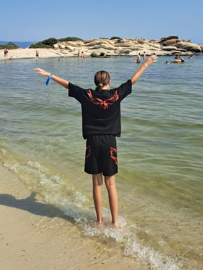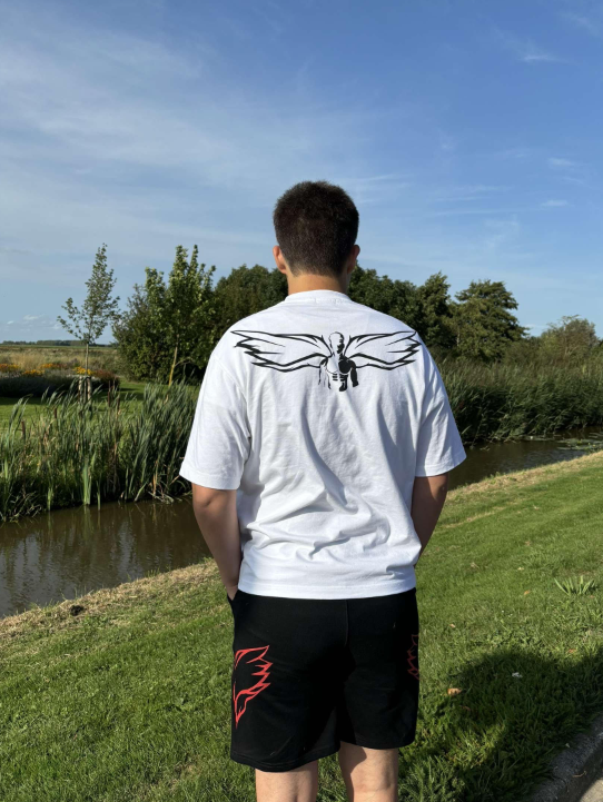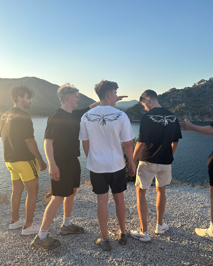 The back of the T-shirt shows him with wings, representing his memory. This brand reminds us to take care of each other and live life to the fullest. You only get one chance in this life, go crazy. <3